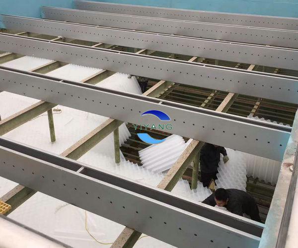 1、沉淀池底部排泥管安裝:蜂窩斜管沉淀池安裝順序一般從底部開始,先完成底部的排泥管道系統(tǒng)的安裝,確保排泥管道開孔符合設(shè) 蜂窩斜管成品 計(jì)要求、固定牢靠,檢查無誤后,才允許進(jìn)入下一道安裝工序。